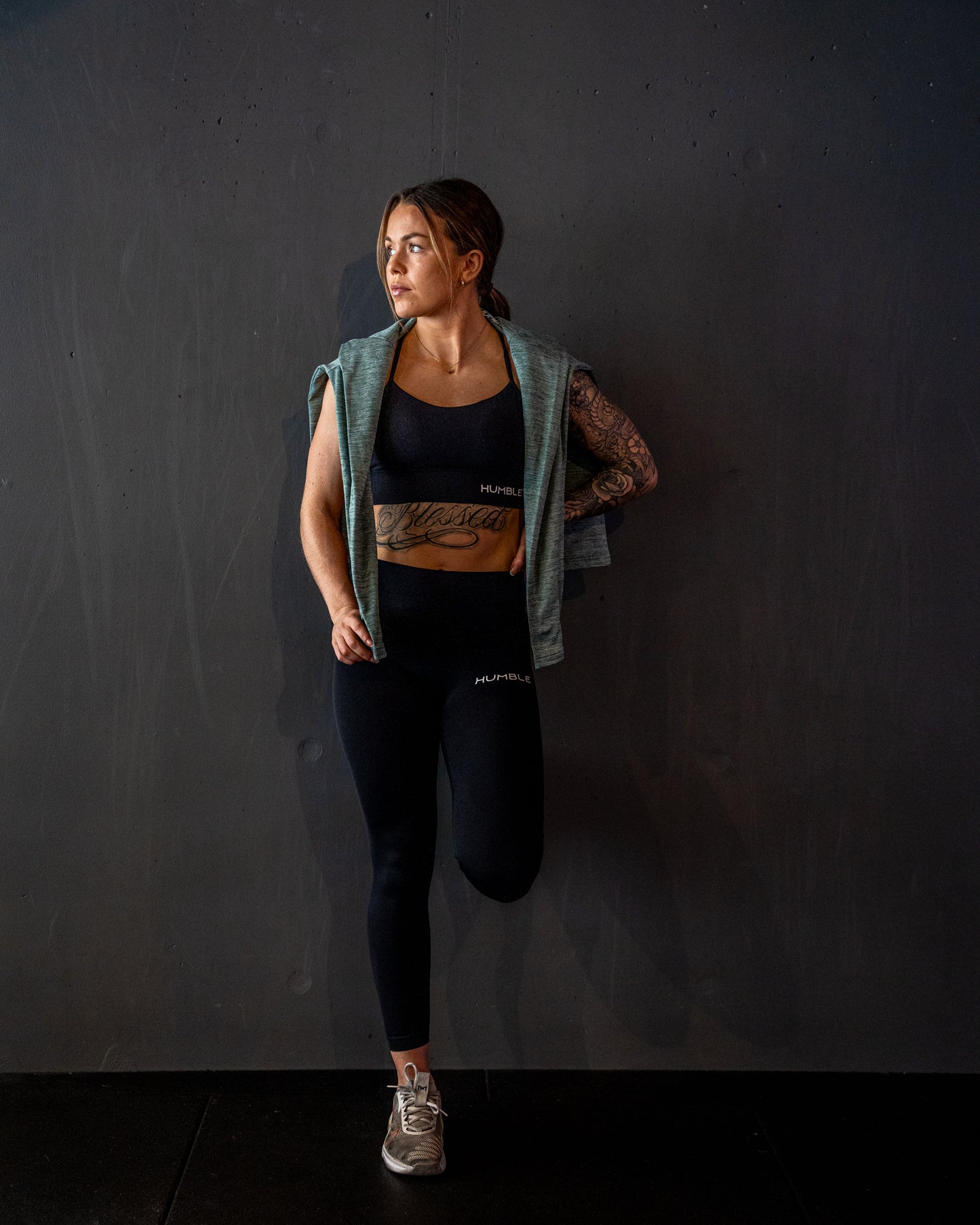 Matcha Ambitious Tights, Solid Sweater och Solid Straps – designade för högintensiv träning och styrketräning.